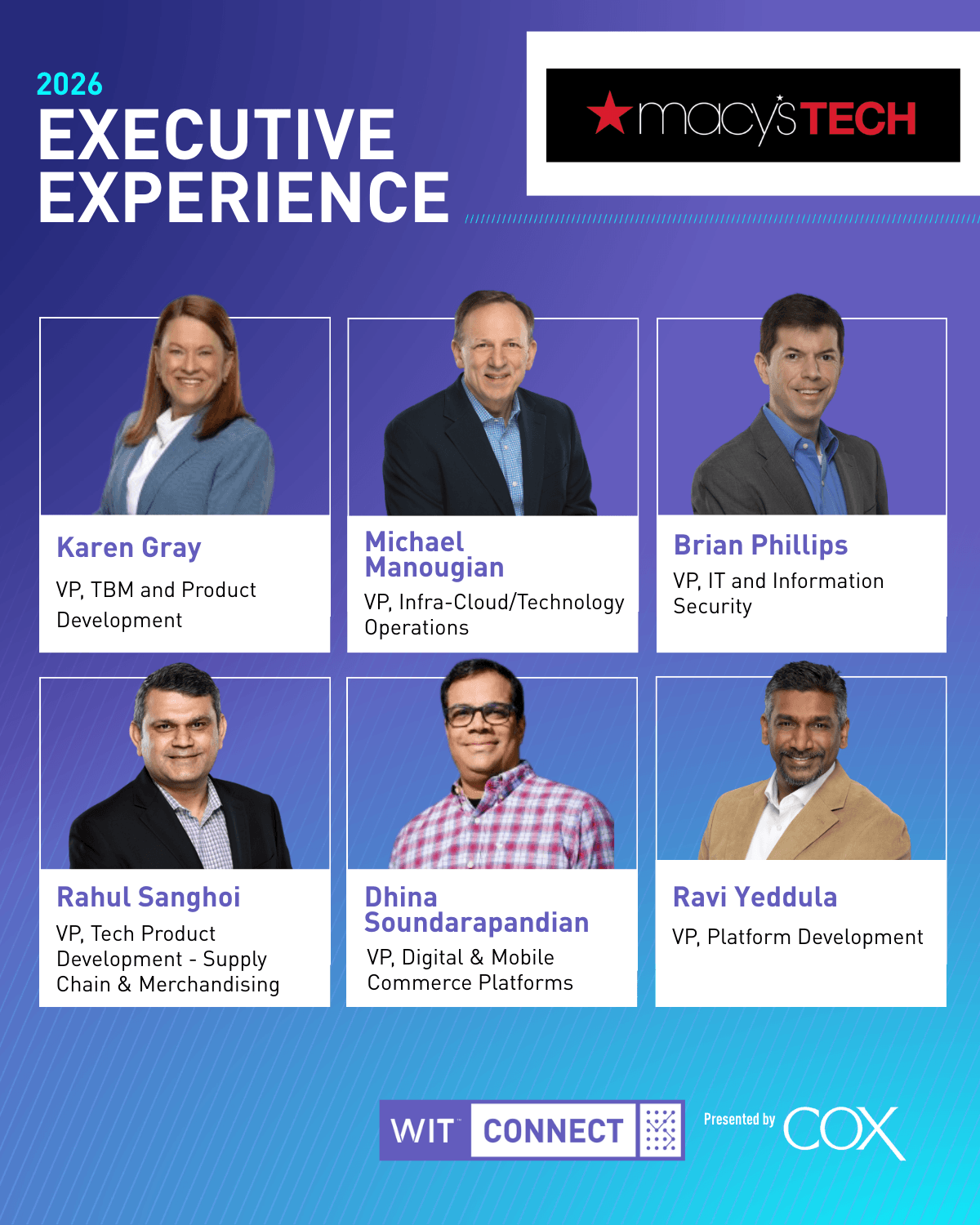 This is a curated opportunity to engage directly with senior executives shaping the future of technology and business in a setting designed for real dialogue. Through structured one-on-one or small-group interactions, participants gain meaningful access to accomplished leaders who have opened their time and perspective to the WIT community.